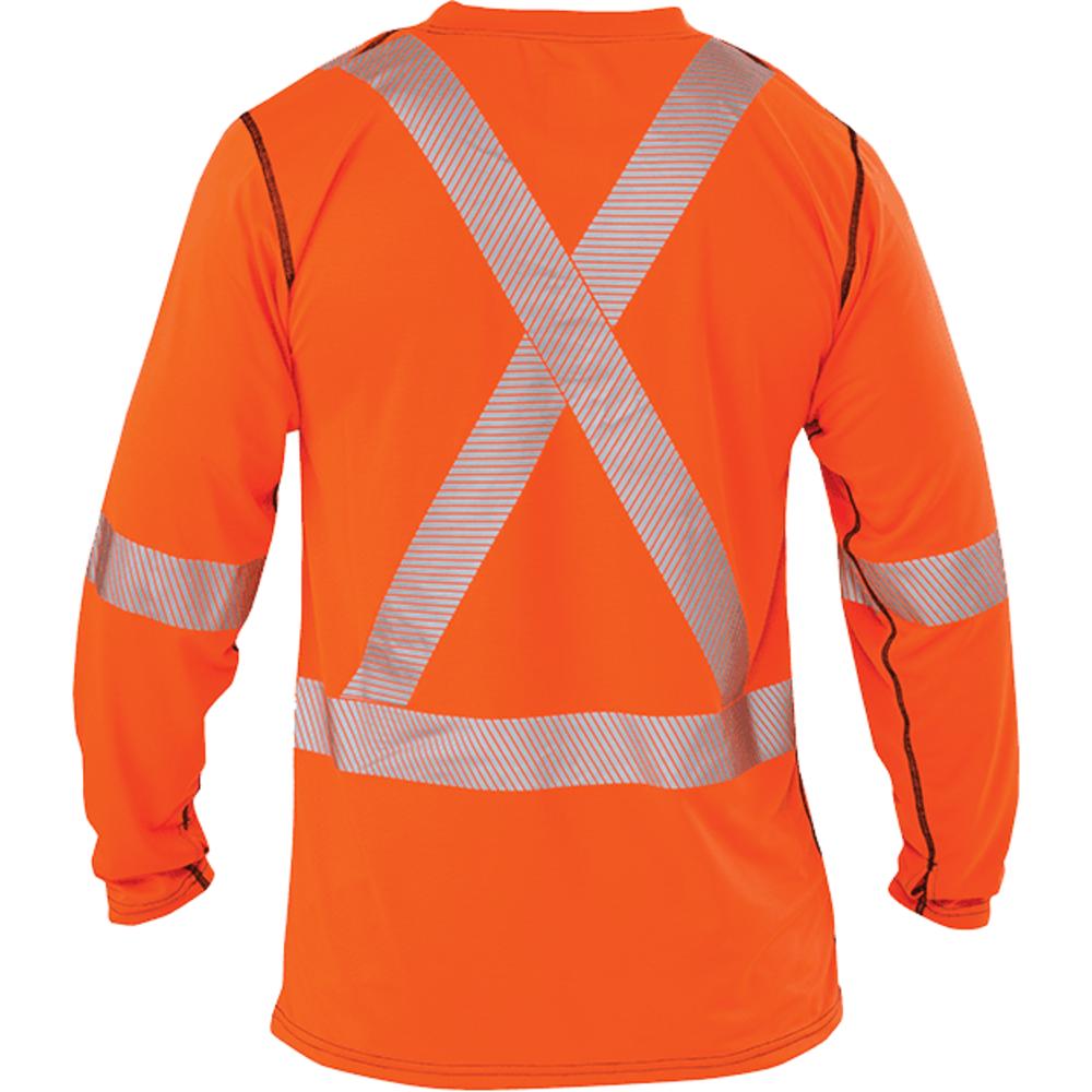 - Flame-Resistant Reflective Material placement provides 360° visibility with 2 vertical stripes on the front, a horizontal stripe around the waist, a horizontal stripe around each arm and an “X” on back.