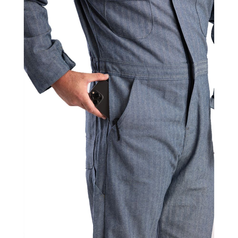 Like their big-brother-in-arms, the C250, these cotton Standard Unlined Coveralls offer great value and added toughness. The C120s are built strong with 100% cotton preshrunk shell, safety-stitched seams, stress points reinforced with bartacks, two-way heavy-duty brass zipper with locking slider and four-needle stitching on waistband with elastic inserts. We add work-ready versatility by offering the pleated bi-swing action back, two chest pockets (the right with hood, the left with the always helpful pencil slot), two front swing pockets with side openings, two reinforced hip pockets and double rule pockets on right leg. Finally, we throw in some comfort and convenience (at no extra charge): our coveralls feature an edge-stitched collar, two snaps on lapels and hidden snaps on cuffs.