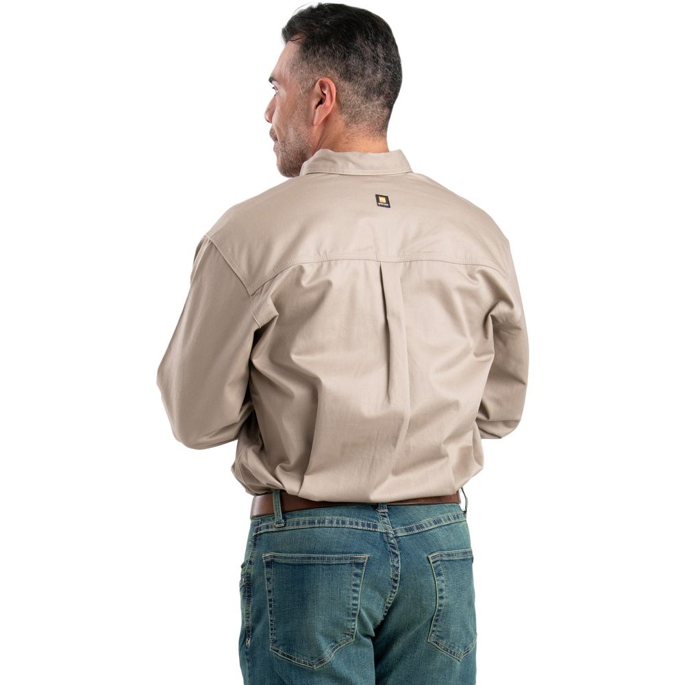 This Berne FR Button Down Workshirt is a collared, long-sleeved button down shirt is made with a sturdy 7.0 oz. twill fabric blend. The material used for this work shirt is flame-resistant and self-extinguish almost immediately upon removal of the ignition source.