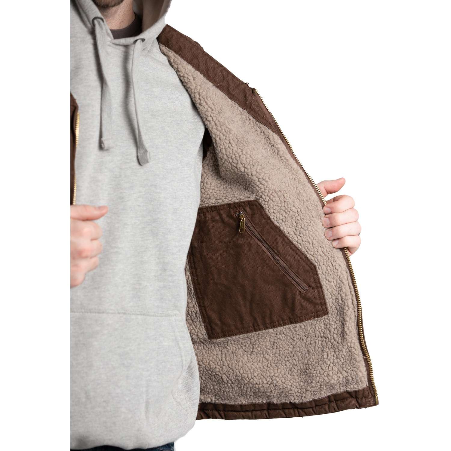 This re-designed vest features a v-neck opening for a comfortable fit. The 12.0 oz. 100% washed cotton duck shell and premium, heavyweight sherpa lining and extended back tail provide additional warmth. This item is perfect when paired with our heavyweight, thermal-lined fleece sweatshirts.