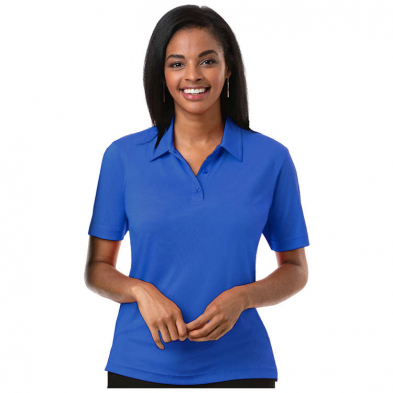 A special jacquard weave creates a nailhead effect on this moisture wicking polo. Perfect for the boardroom, golf course and everywhere in between, our moisture wicking Nailhead Polo insures comfort and professional styling. 5.oz 100% polyester interlock knit. Matching buttons. Self-fabric collar for modern styling. Tag free label. Hemmed sleeves. Ladies' classic fit.