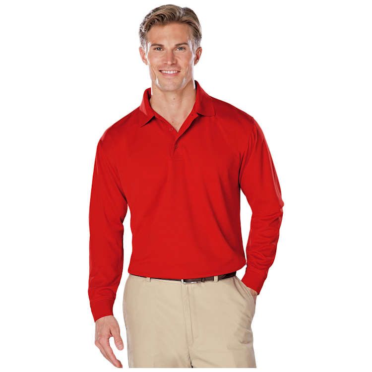 This adult long-sleeve snag-resistant polo is a versatile shirt that is a perfect fit for several occasions! Featuring moisture-wicking technology designed to keep you cool and dry, this eye-catching item has stain release and wrinkle resistance, a three-button placket with matching buttons, a rib-knit and curl-free collar, hemmed cuffs, a taped neck and shoulder, a straight bottom, side vents and a tag-free label.