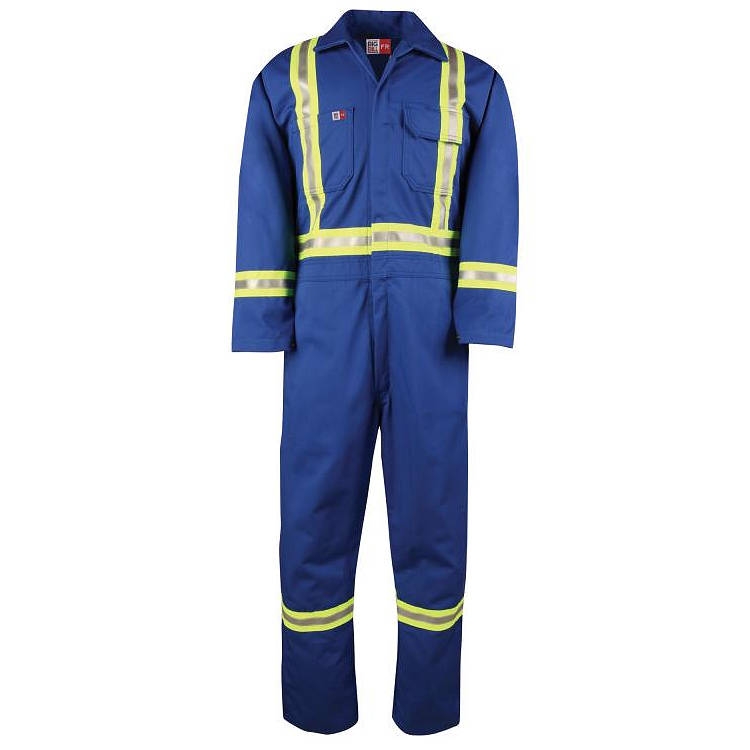 3M™ Scotchlite™ Reflective Material #8940 3/4” FR Silver Center Stitched Over 2” Fluorescent Lime-Yellow Fire Trim-X®, Industrial Wash. Reflective Material Emplacement provides 360-degree visibility with two vertical strips on front, “X” on back, material around the waist, a horizontal strip around each leg and arm.