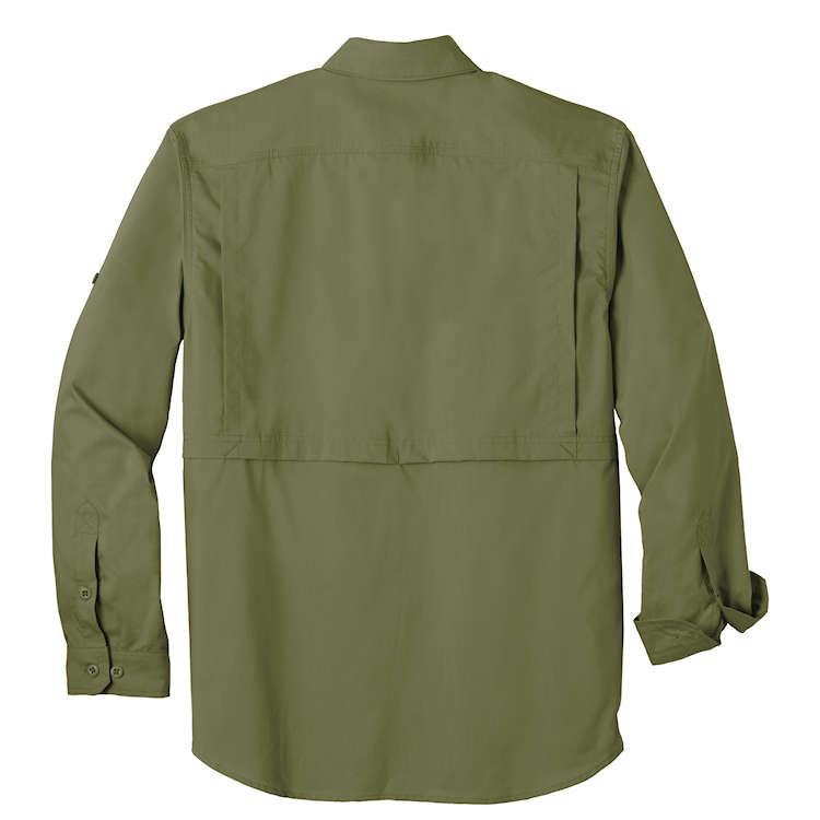 - Four chest pockets: Left has buttoned-flap pocket with an oversized, concealed, zippered, mesh-lined vertical pocket;