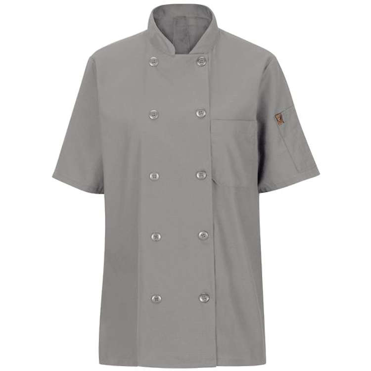 Forget about stains and motion restriction with our Women's Ten Button Chef Coat with MIMIX™ and OilBlok. It comes with strategically placed MIMIX™ stretch panels for enhanced mobility and maximum range of motion while performance mesh improves breathability. This chef coat is packed with features like OilBlok technology to repel liquids such as cooking oil and keep stains from forming so you look professional the entire day. It also has superior color rentention and wickability. This is the only women's chef coat like this on the market!