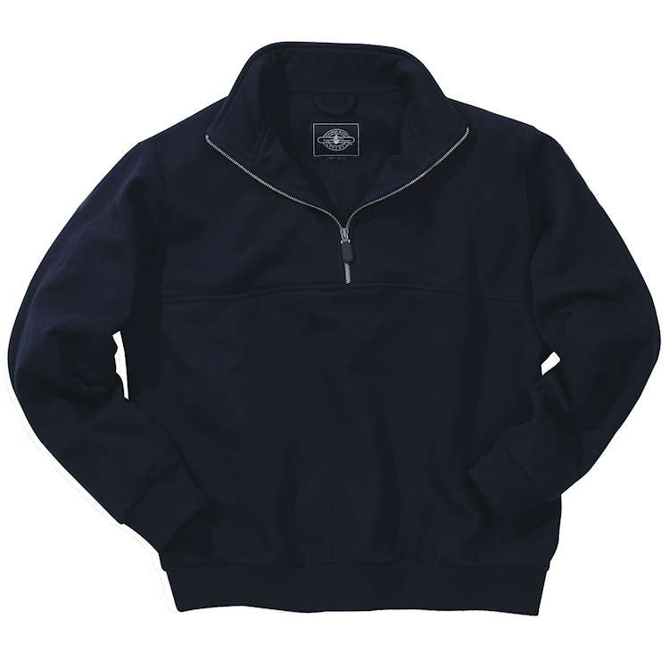 - Quarter zip pullover with metal zipper and easy-grab rubber zipper pull