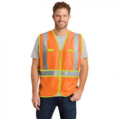 Designed for breathable comfort, this two-tone vest is perfect for surveyors. Featuring storage pockets for tools and equipment, it can be used in several ANSI 107 Class 2 work environments.
