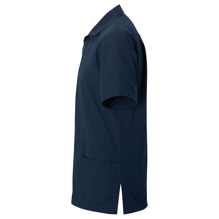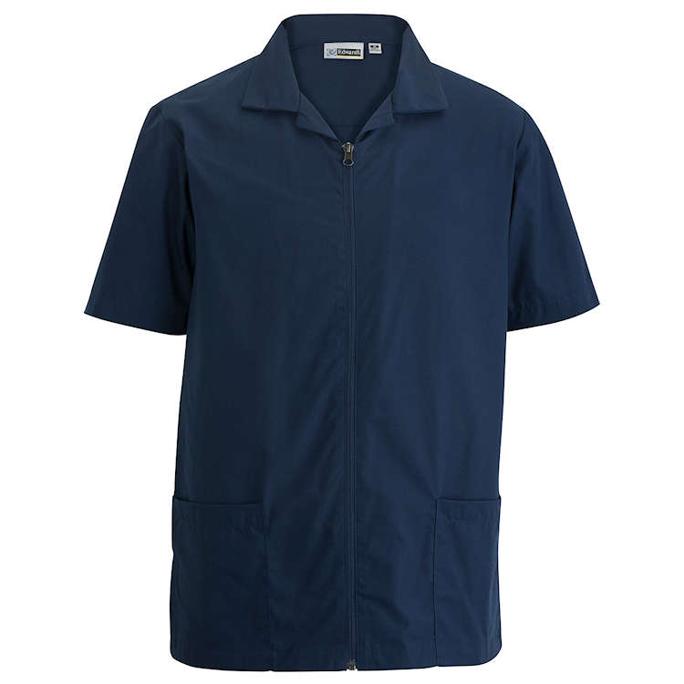 This Men's lightweight service shirt has an exposed zipper. Perfect for housekeeping; spas and medical environments.