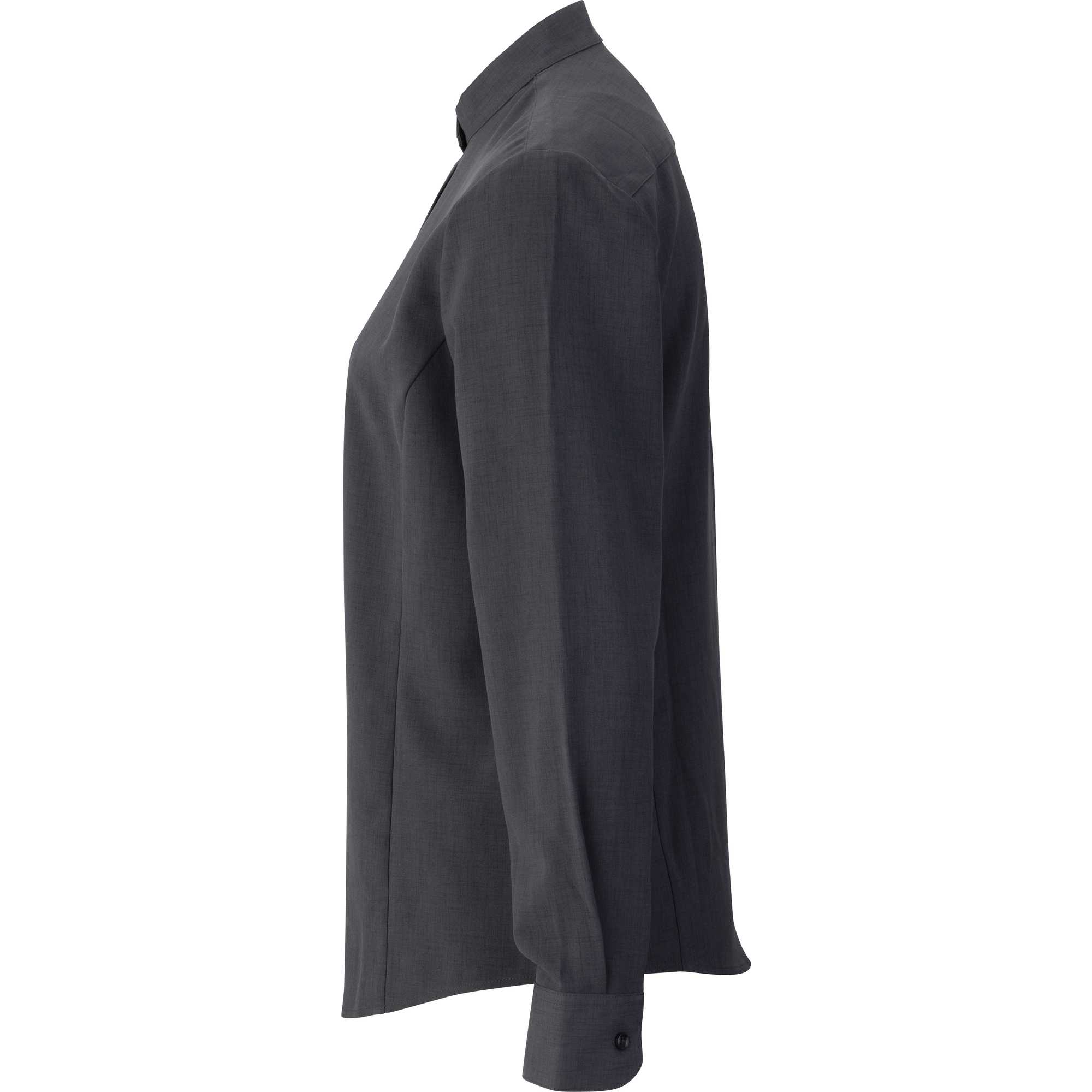 The traditional fit offers all-day comfort, enhanced by 4-way stretch for ease of movement. A sleek banded collar and covered placket create a clean, modern profile suitable for hospitality, retail, and corporate environments. Front and back princess seams provide a flattering, tailored shape, while the back yoke adds structure and durability.