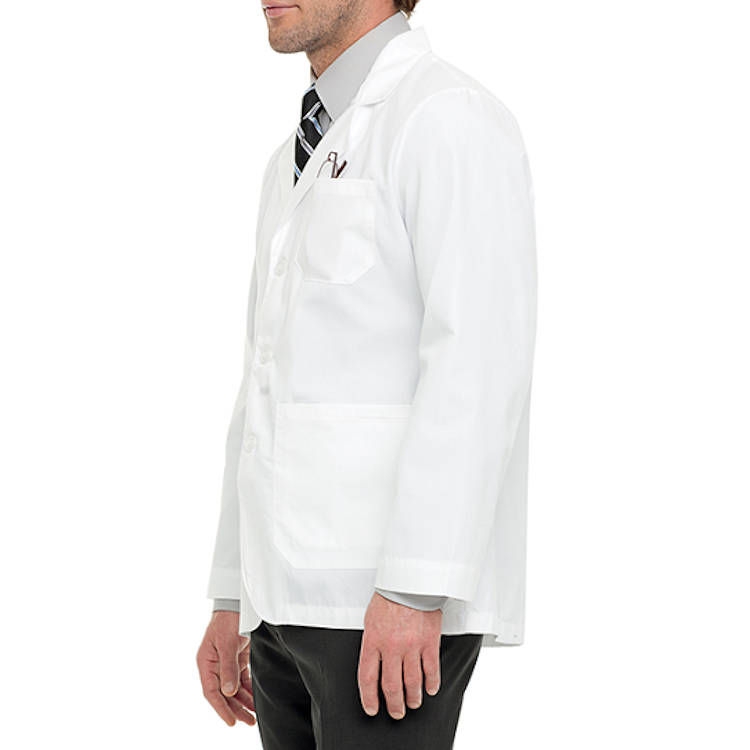 • Designed to secure your essentials, this lab coat offers three front pockets, two inside pockets and side hand access