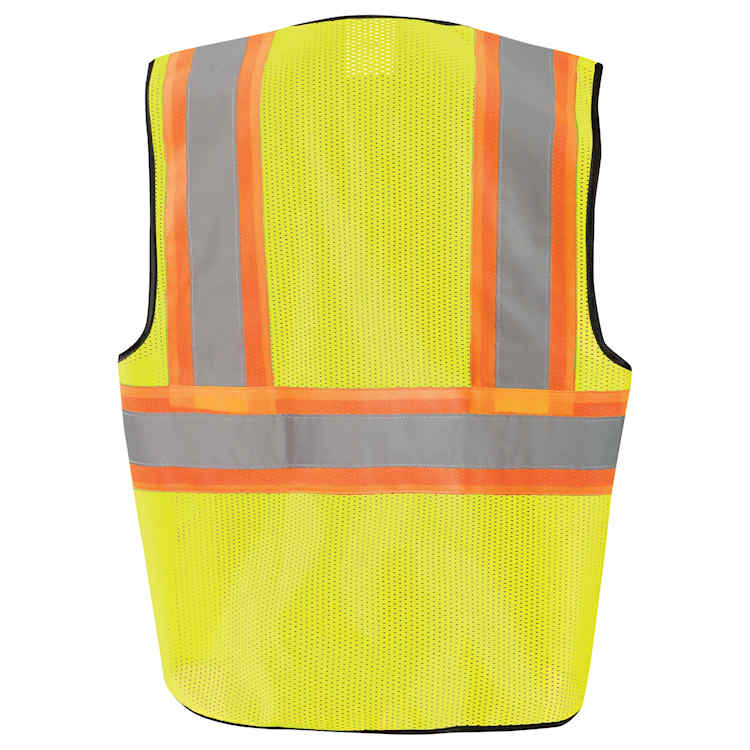 Save big with this value 100% polyester mesh safety vest from OccuNomix. The ECO-GC2T is ANSI type R class 2 compliant and features two tone contrasting tape for increased visibility.