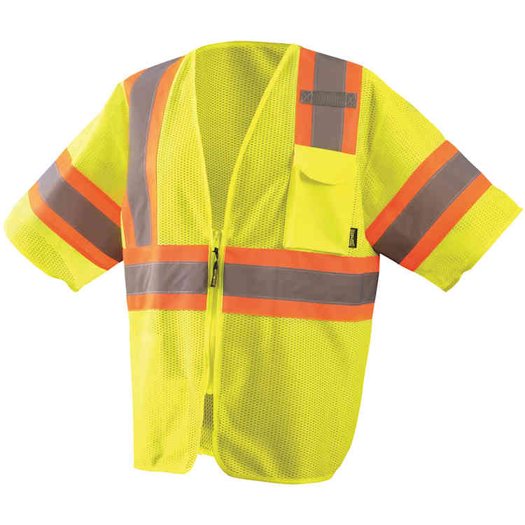 Save big when you choose the OccuNomix ECO-IMZ32T safety vest. This economically priced vest features two-tone contrast striping for increased visibility, zipper front closure, and three pockets.