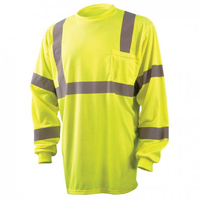 Trade in your safety vest for one of these high visibility ANSI class 3 safety shirts. The long sleeve moisture wicking OccuNomix LUX-LSETP3B is made from lightweight birdseye mesh polyester fabric and has one left chest pocket.