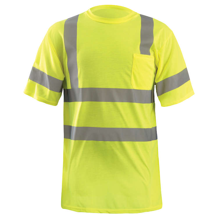 Trade in your safety vest for one of these high visibility ANSI type R class 3 safety shirts. The moisture wicking OccuNomix LUX-SSETP3 is made from lightweight polyester fabric and has one left chest pocket.