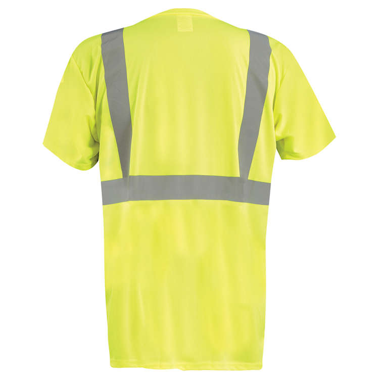 Trade in your safety vest for one of these high visibility ANSI class 2 safety shirts. The moisture wicking OccuNomix LUX-SSETPBK is made from lightweight birdseye mesh polyester fabric and has one left chest pocket. It also features a black bottom front to help hide dirt.