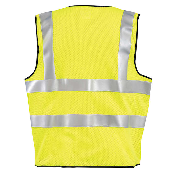 FR Arc rated vest from Occunomix meets ASTM F1506 for flame resistance. Made with solid mod-acrylic material, flame resistant thread, binding and closure which conforms to the ASTM F1506 standard. Modacrylic fabric is arc rated at ATPV 4.6 cal/cm². This hi vis workwear is ANSI/ISEA 107-2015 Type R, Class 2 compliant with 3M reflective tape: 2 360° horizontal stripes plus two vertical shoulder stripes. One outside pocket. Machine washable.