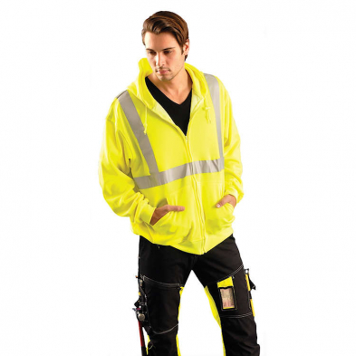 Keep warm and stay visible in cooling weather with this OccuNomix LUX-SWTLH safety hoodie.