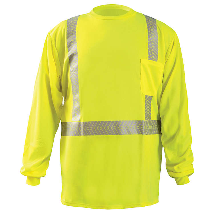 Trade in your safety vest for one of these high visibility ANSI class 2 safety shirts. The long sleeve, moisture wicking OccuNomix LUX-TLSP2B is made from wicking polyester birdseye fabric and features segmented tape reflective striping.