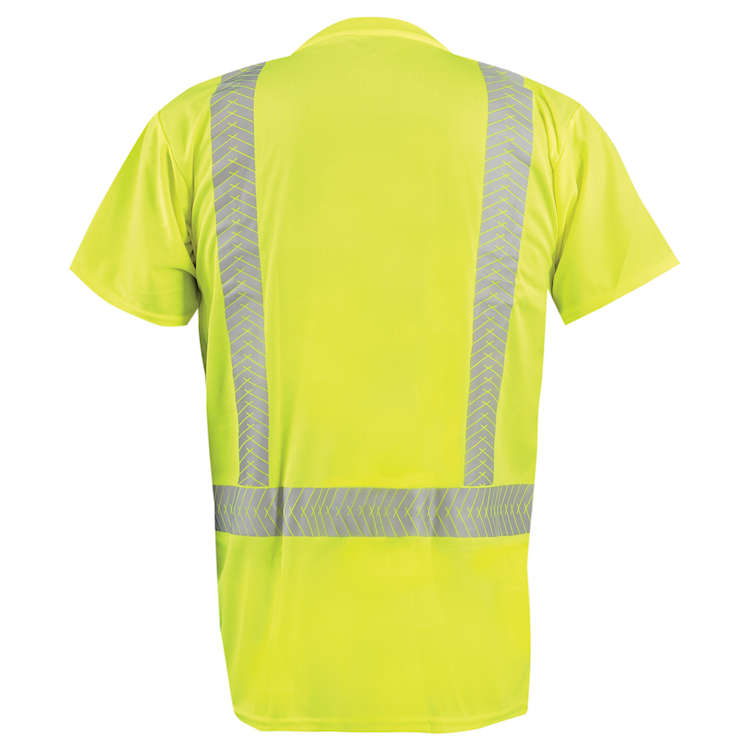 Trade in your safety vest for one of these high visibility ANSI type R class 2 safety shirts. The short sleeve, moisture wicking OccuNomix LUX-TSSP2B is made from wicking polyester birdseye fabric and features segmented tape reflective striping.