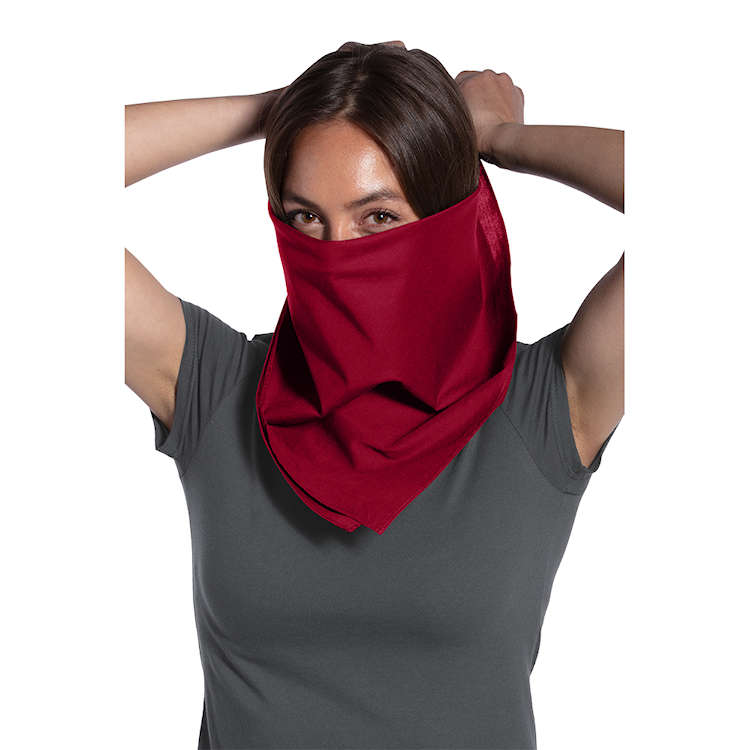 Sized larger than an average bandana, this durable bandana offers more face covering and decoration space. Versatile and multifunctional, it can also serve as a headband or neckerchief. Fold bandana diagonally and tie around head to cover face as desired.