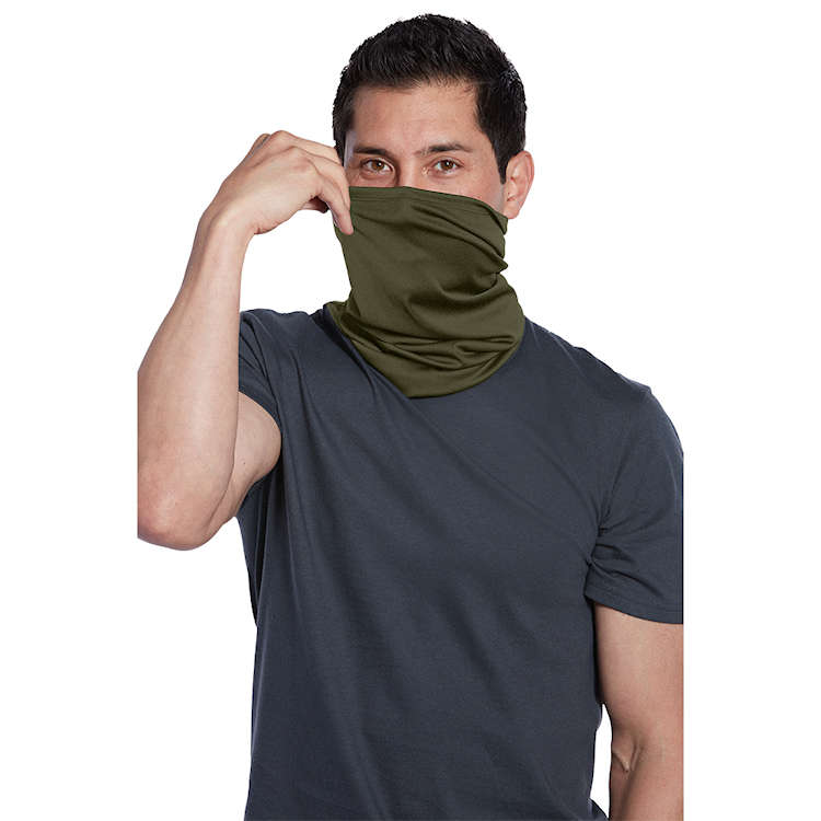 This gaiter serves as a multifunctional, versatile face covering as well as a headband, neckerchief, hood and sun guard. Pull over head, arrange at neck and pull up to cover head and face as desired.