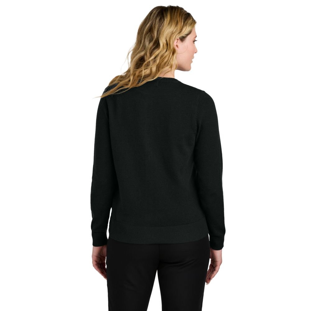 The Port Authority® Women’s Easy Care Crewneck Cardigan Sweater is a perfect blend of professionalism and comfort. Made from a durable tri-blend of 56% cotton, 29% nylon, and 15% acrylic, it features fully-fashioned seams for a polished look. The 1x1 rib knit collar, cuffs, and hem provide a comfortable fit, while dyed-to-match faux horn buttons add a touch of elegance. Designed to hit at the hip, this machine-washable cardigan is ideal for layering in business and casual settings, making it a versatile and stylish wardrobe essential.