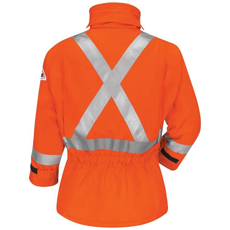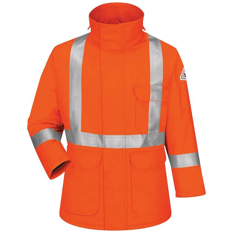 - Two-way, separating, extra heavy-duty Nomex® taped brass zipper, fully covered with insulated storm flap, concealed snap closure