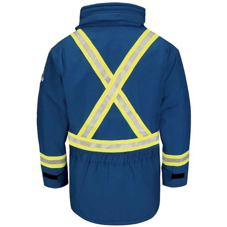 - Two-way, separating, extra heavy duty Nomex®, taped brass zipper, fully covered with insulated storm flap, hook and loop secured