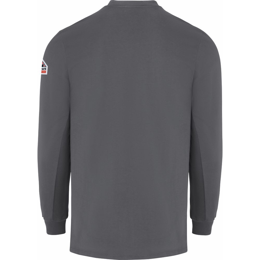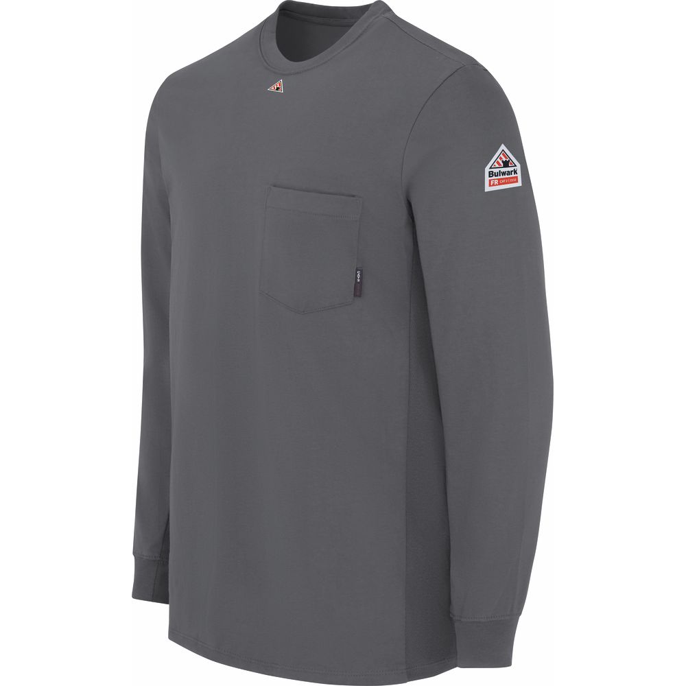 Meet the most comfortable FR long sleeve T-shirt you'll ever wear. This CAT 2 AR/FR, NFPA® 2112 compliant tee features a heat seal Bulwark® triangle centered at neck to show wearer has on FR undergarment.