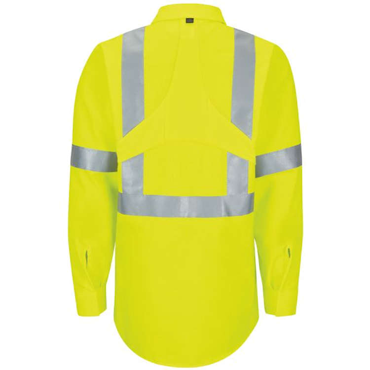 Our Long Sleeve Hi-Visibility Ripstop Work Shirt with MIMIX™ and OilBlok sets a new standard for what a hi-vis work shirt should be. Its durable ripstop fabric repels tough liquids, like oil, to fight stains while being 75% stronger than other poplin workwear fabrics. This shirt also comes with strategically placed MIMIX™ mesh flex panels for unmatched mobility in a long sleeve work shirt and complies with Type R Class 2 requirements.