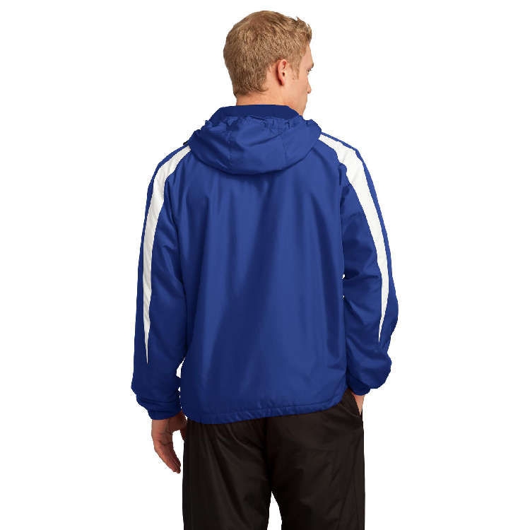 Versatile and comfortable, this jacket has athletic colorblocking and includes a hood to shield you from unexpected wind and rain.