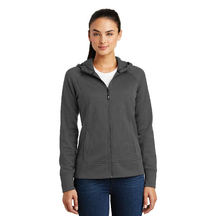 A welded mesh texture joins solid tech fleece for a state-of-the-art look that also performs with moisture wicking and snag resistance.