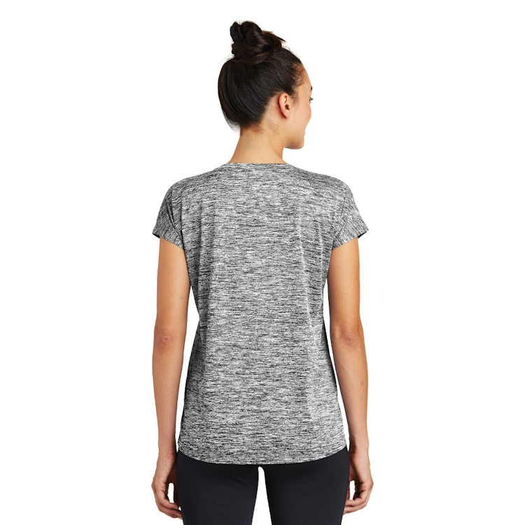 Our color-locking tee has a soft hand, wicks moisture, resists snags and is energized with an allover heather pattern.