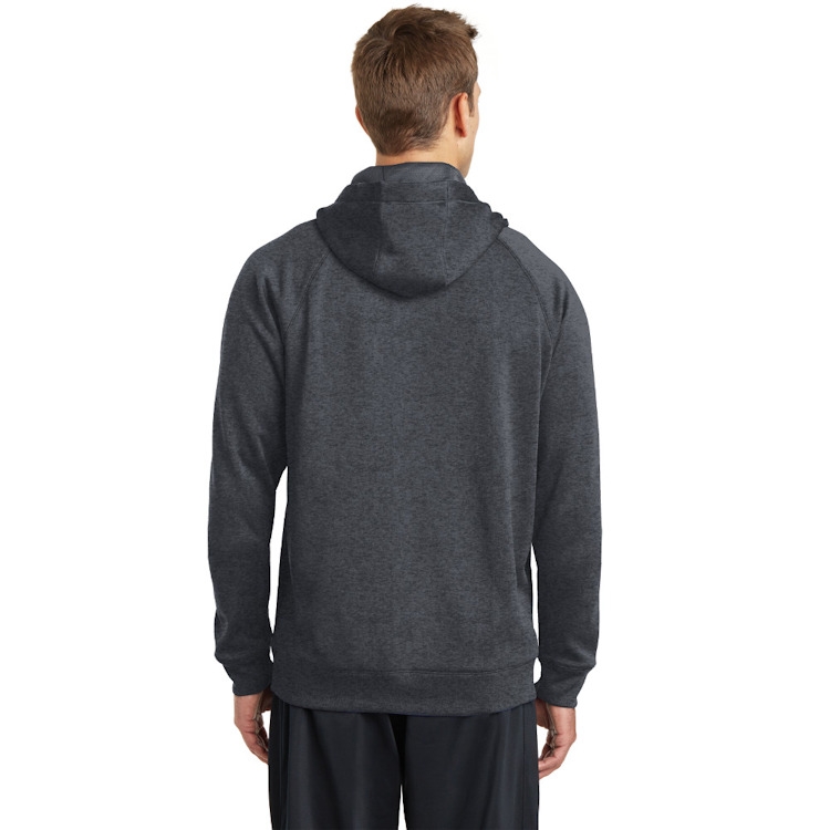 Snag-resistant and pill-resistant with a matte finish, the double-knit construction enhances breathability and moisture wicking, while a Graphite mesh hood lining and two-tone drawcord add an athletic edge.