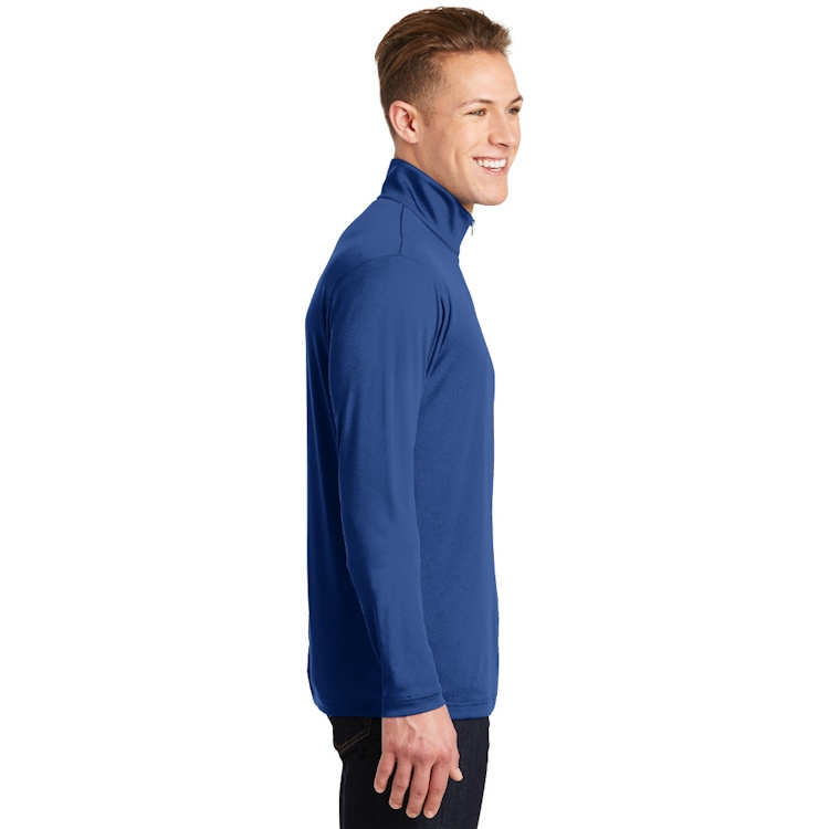 This lightweight pullover locks in color and wicks moisture. It's versatile enough for year-round wear.