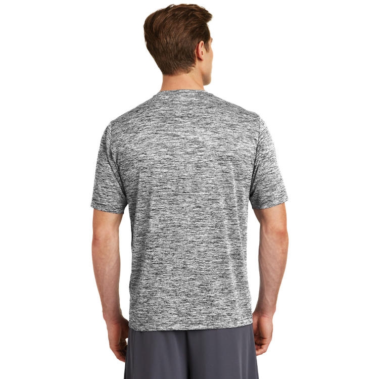 Our color-locking tee has a soft hand, wicks moisture, resists snags and is energized with an allover heather pattern.