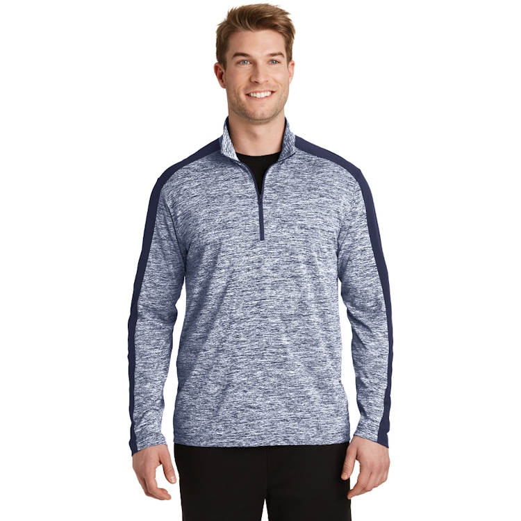 This lightweight pullover locks in color, wicks moisture, resists snags and has an amped up colorblock look.