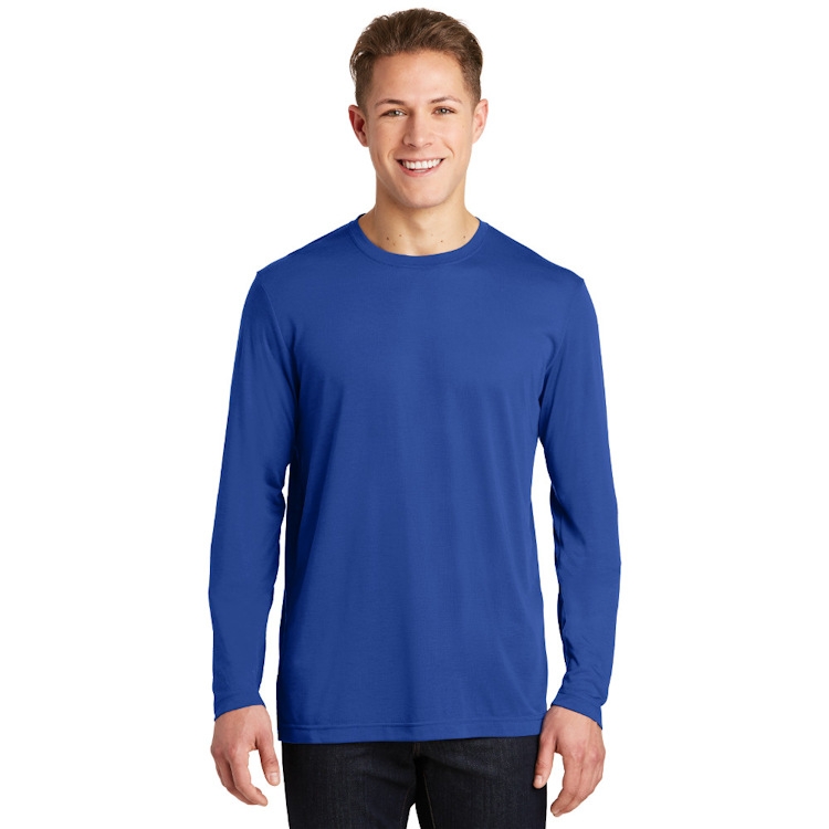 A soft cotton hand merges with color-locking, moisture-wicking performance in this tee that also has a matte finish.