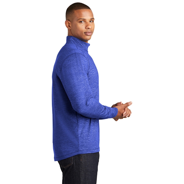 With its allover reflective heather print, this moisture-wicking pullover is subtle during the day and a standout at night. Plus, it stretches for easy mobility.