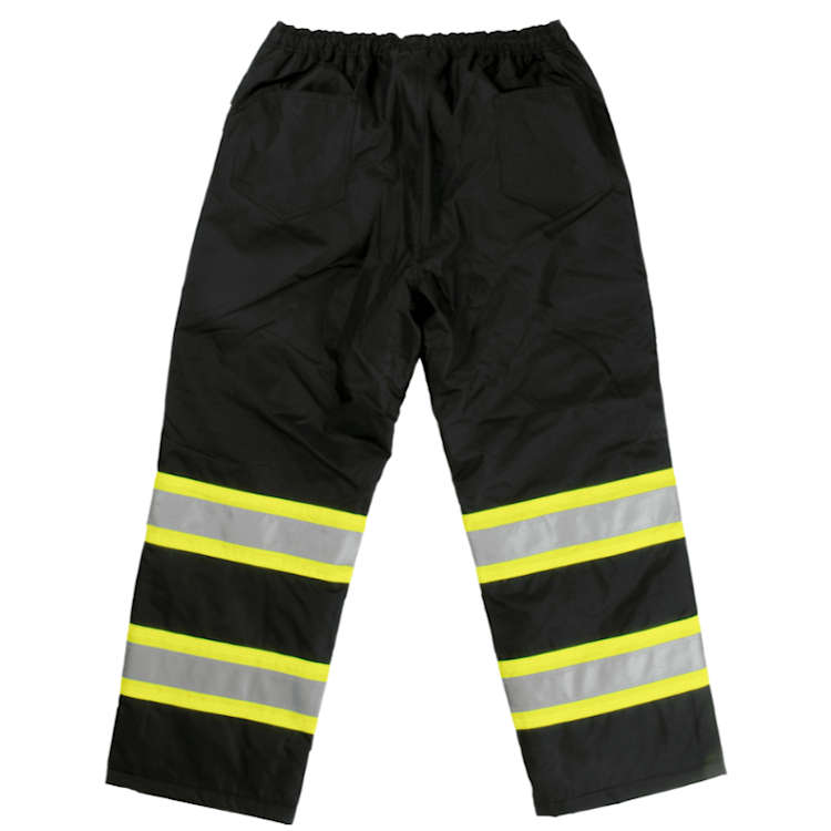 The everyday snow pant with reflective tape. These hi-vis insulated pants are easy to pull on and off and perfect for those who need to be seen when doing things like shoveling snow.