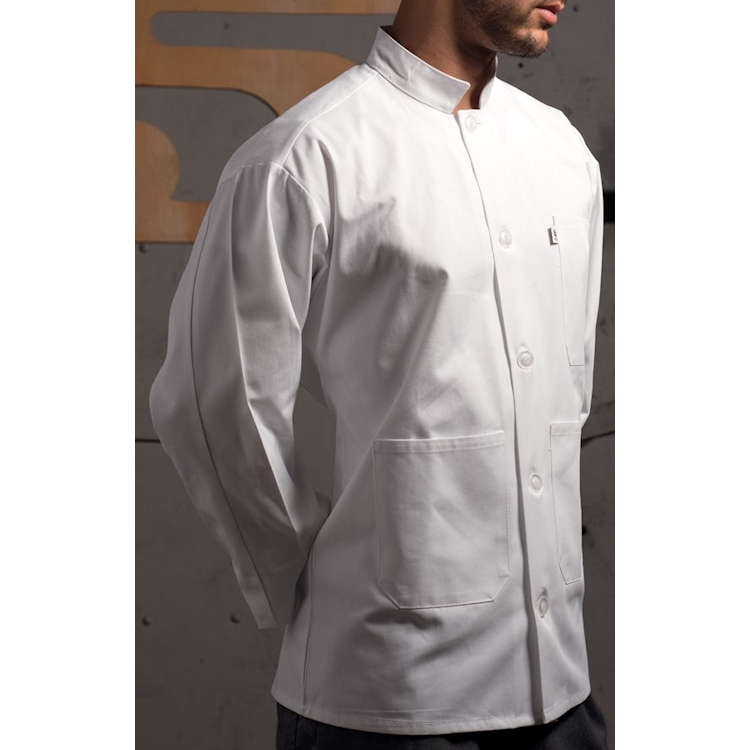 Even if you never figure out how to hold a spoon and fork in one hand and serve without dumping food everywhere, our Single-Breasted Server Coat will have you looking like a pro. Offers a mitered breast pocket and two lower patch pockets, and easily transitions from the kitchen to the front-of-the-house.