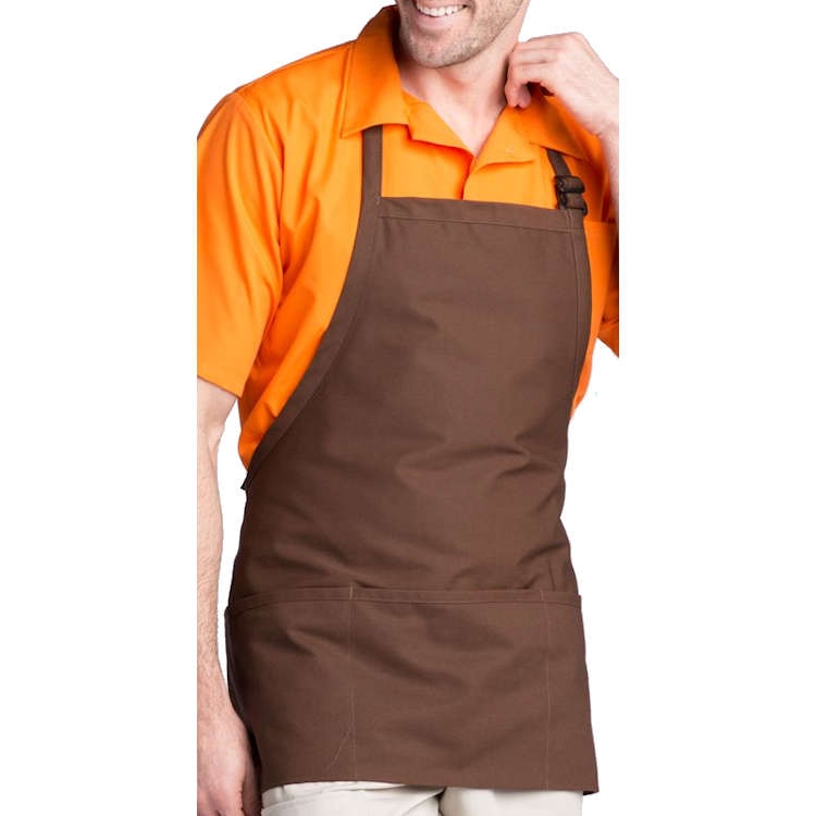 One of our most popular styles. This bib apron features extra long 40” ties, a sliding neck adjustment and three generous pockets.