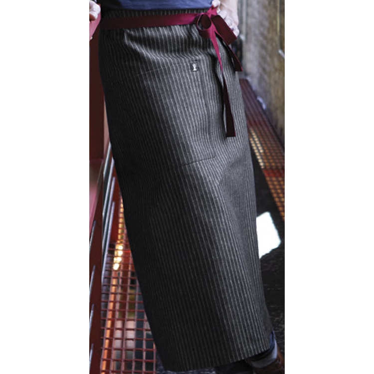 Create a boss new look with our Kingpin bistro. We start with a pinstripe denim that's so good looking it's criminal and add red web ties. The look is finished with a patch pocket with pencil insert, reinforced bar tacking and extra-long 43" web ties.