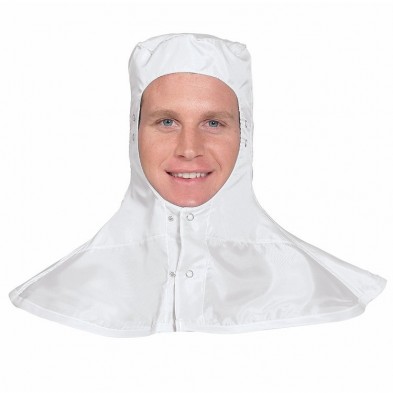 - Hood's bib drapes across shoulders