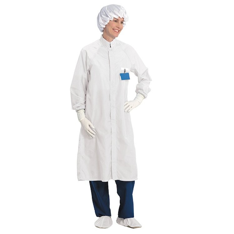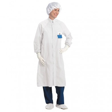 SC-3 apparel system is engineered to meet up to and including a Class 10 (ISO 4) cleanroom's rigid demands for the microelectronics, semiconductor, disk drive, laser and similar industries. This polyester with carbon grid, Burlington C3™ high density apparel system, is designed to guard against airborne particles and to dissipate static charges.